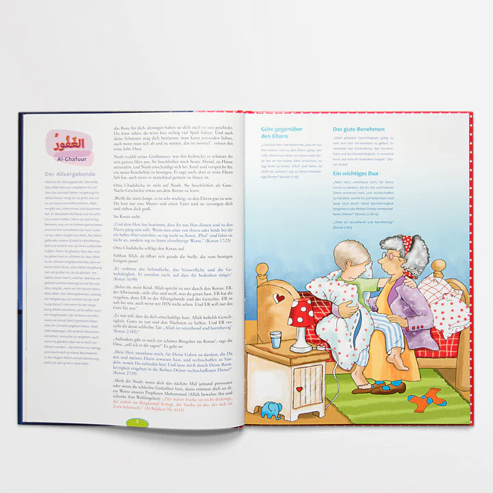 Dieses hardcover, farbig illustrierte Kinderbuch ist ideal für muslimische Kinder, um die Grundlagen der Aqida (Glaubenslehre) und die ersten, einfachen Namen und Eigenschaften Allahs kennenzulernen.